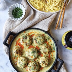 Kipgehaktballetjes in een romige mosterdsaus
