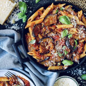 Deze Pasta alla Norma is comfort food op zijn best! De rijke saus, vlezige auberginestukjes en hartige kaas maken dit een gerecht waar je in wilt blijven steken!