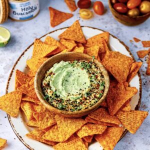 - Knijp vervolgens wat citroensap door het mengsel om verkleuring te voorkomen. Zet de kom op een schaal en serveer met nacho's.
