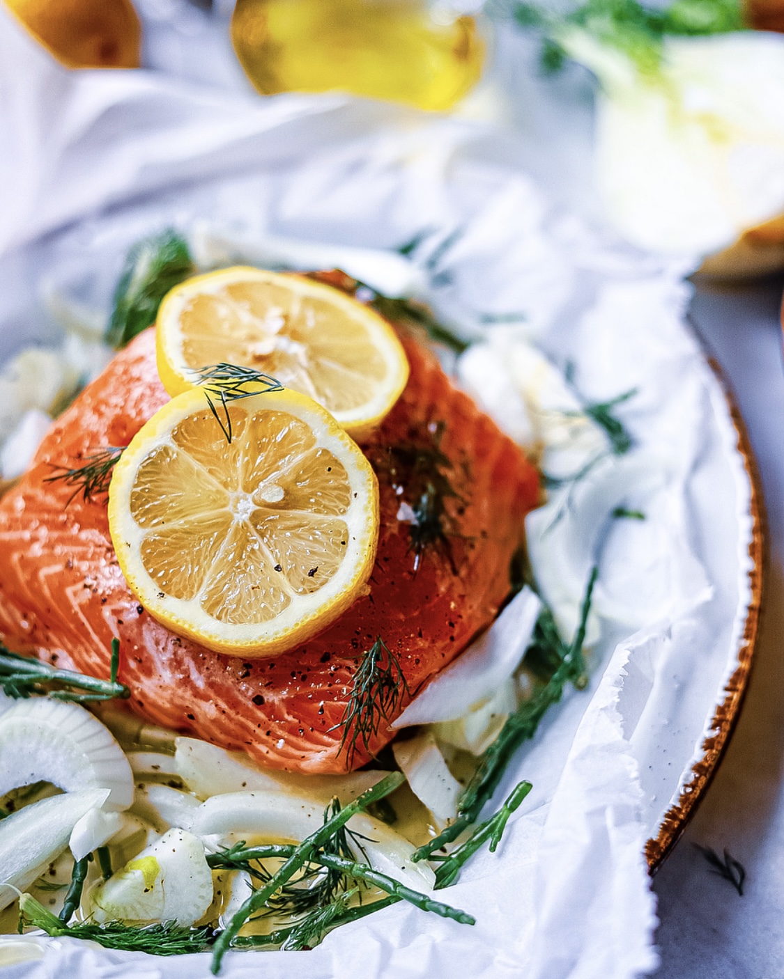 • Bak de zalm 20-25 minuten, afhankelijk van hoe gaar je je zalm wilt hebben. Als de baktijd voorbij is, open je de verpakking en sprenkel je er wat citroensap over. Serveer met aardappelen, een salade of over rijst.Als je mijn recepten maakt, tag me er dan in en gebruik #thespicedchickpearecipes. Ik zou graag willen zien wat je hebt gemaakt.