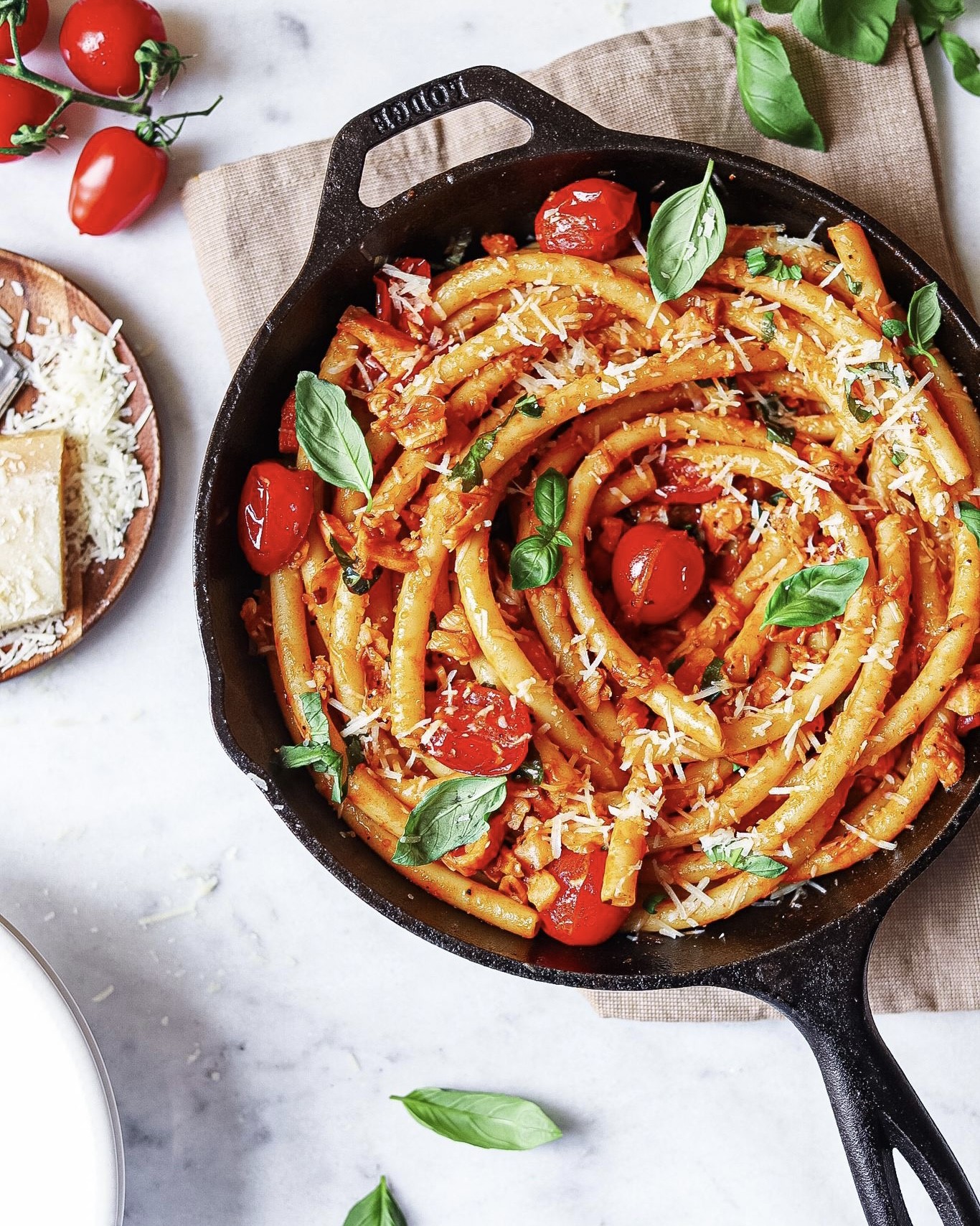 I personally believe that the best meals come together when you just use your creativity and have fun in the kitchen! Pasta is great for these adventures. With a few ingredients you can have a complete and wholesome meal. Hope you give this recipe a go!