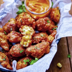 Cheddar Corn Fritters w/ Buldak Mayo