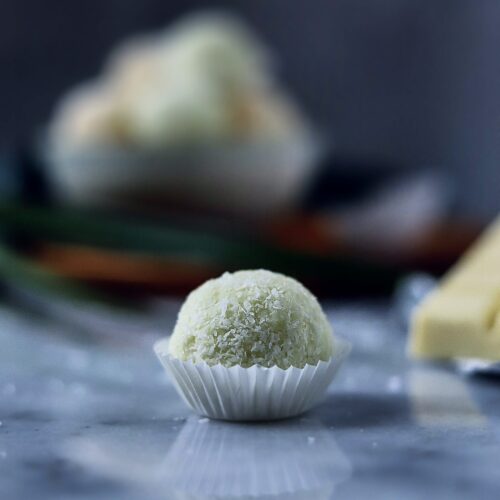 • The next day, grease your hands with butter and scoop the mixtures out with a teaspoon. Roll them it into balls and coat them with the grated coconut.TIPS:- Add foodcolouring for an intense green colour.- Use nuts, sesame seeds or even finely chopped dried fruit to coat the Brigadeiro. The sky is the limit with these!- Make a chocolate Brigadeiro and swap the white chocolate for an intense dark chocolate flavour!If you make my recipes please tag me in them and use #thespicedchickpearecipes. I'd love to see what you've made.