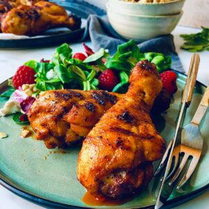 >>Need a fresh salad to go with these drumsticks? Then try out my Raspberry Dressing paired with green leaves, apples slices, feta cheese and walnuts.