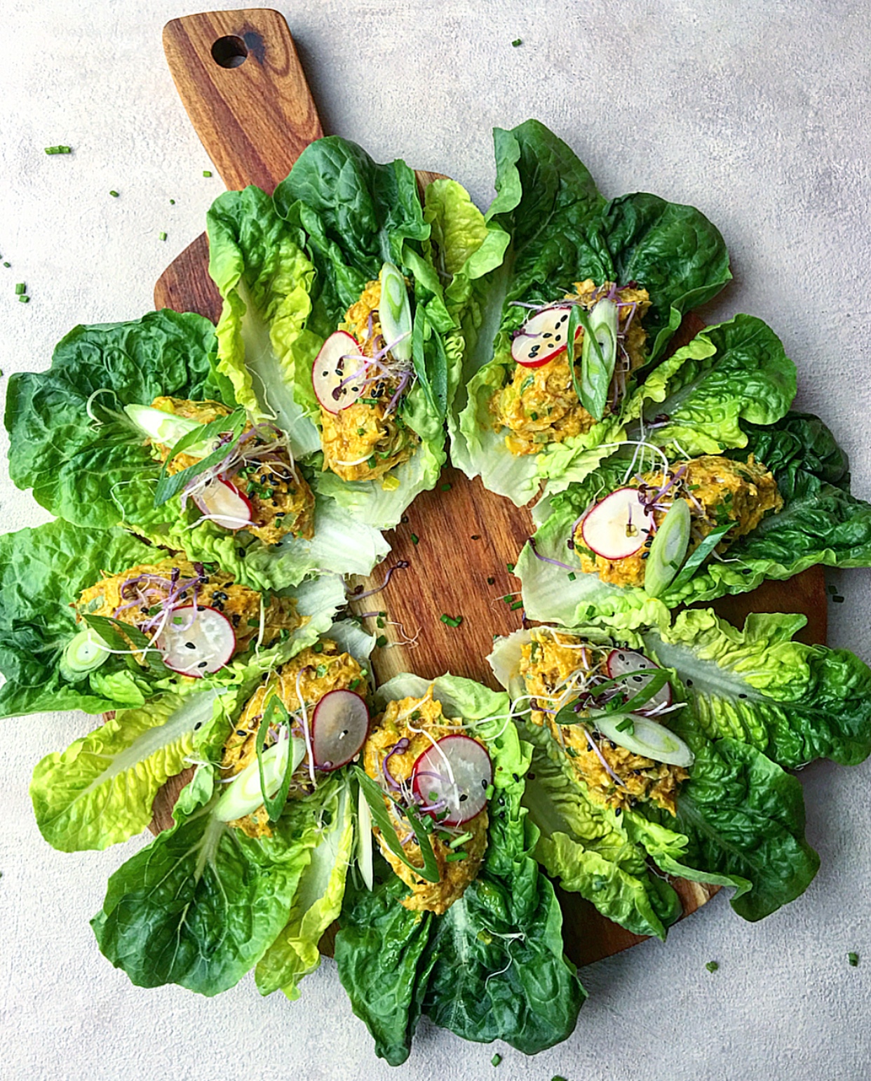 - Put the salad in the fridge (30 to 60 minutes) and serve in the lettuce wraps.TIP: you can also have this salad in a bagel or on toast. Top with crunchy veggies, red onions and maybe another cheeky smear of mayonnaise.If you make my recipes please tag me in them and use #thespicedchickpearecipes. I'd love to see what you've made!