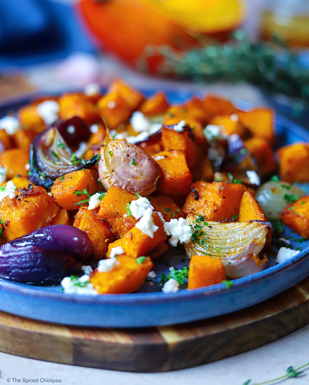 - Bake for 20-25 minutes (toss the pumpkin cubes around 10-15 minutes). TIP: sprinkle the Roasted Pumpkin cubes with feta cheese, some fresh parsley/coriander and drizzle with some olive oil. You can also serve them with my Pumpkin Tortilla!If you make my recipes please tag me in them and use #thespicedchickpearecipes. I'd love to see what you've made!