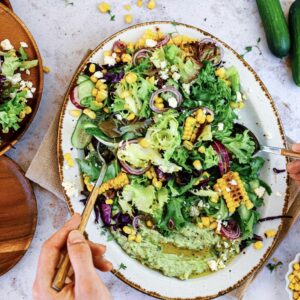 Salad with Grilled Corn, Creamy Guacamole & Holy Guacamole Dressing