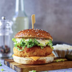 If you’re getting tired of those meaty burgers, then it’s time for this gamechanger seafood burger! Made with seasoned shrimp, coated in Panko breadcrumbs and topped with a delicious homemade Tartar Sauce.