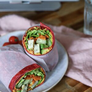 Wraps w/ Garlic Cashew Carrot Puree, Halloumi & Cucumber