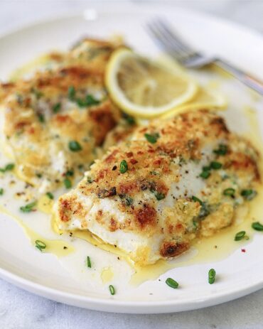 A fishy dinner in 25-minutes? YES! It’s possible with this Cod Fish w/ Parmesan Crust. Not only is this done in minutes, it’s flavorful, flaky and the topping is super crispy.